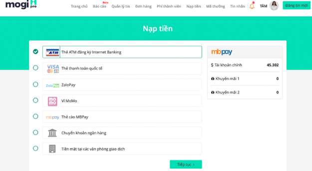 4.2 Thanh toán giữa đối tác, người bán, nhà cung cấp.. và Sàn TMĐT Mogi.vn