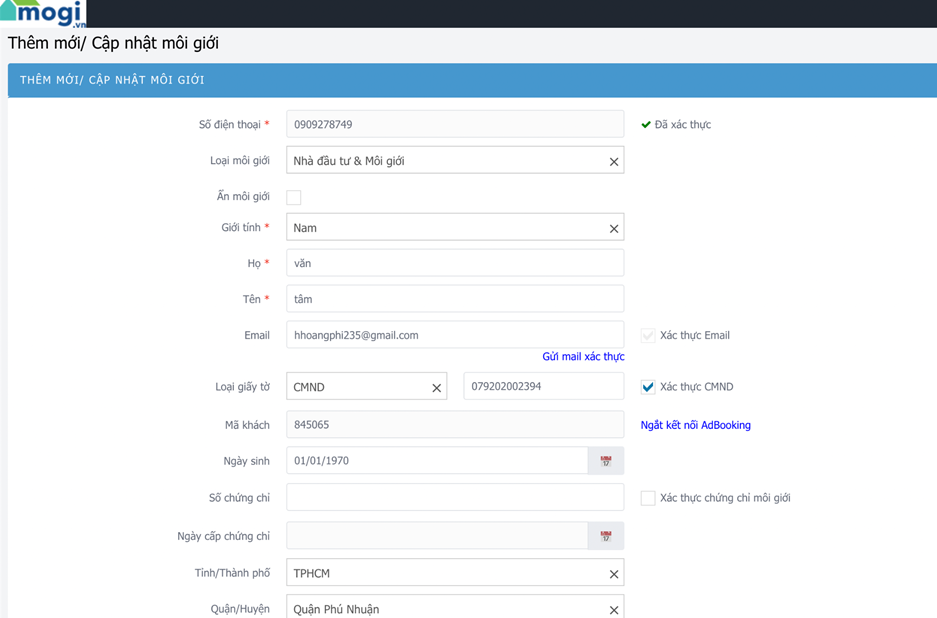 (ix) Khi Thành Viên đồng ý đăng kí các dịch vụ hoặc tính năng liên quan, Thành Viên phải cung cấp thông tin xác thực về bản thân và phải cập nhật nếu có bất kỳ thay đổi nào. Mỗi người sử dụng Sàn TMĐT Mogi.vn phải có trách nhiệm giữ bí mật mật khẩu và các thông tin định danh tài khoản. Chủ tài khoản phải hoàn toàn chịu trách nhiệm cho mọi hoạt động được thực hiện dưới tên tài khoản và mật khẩu đã đăng kí.