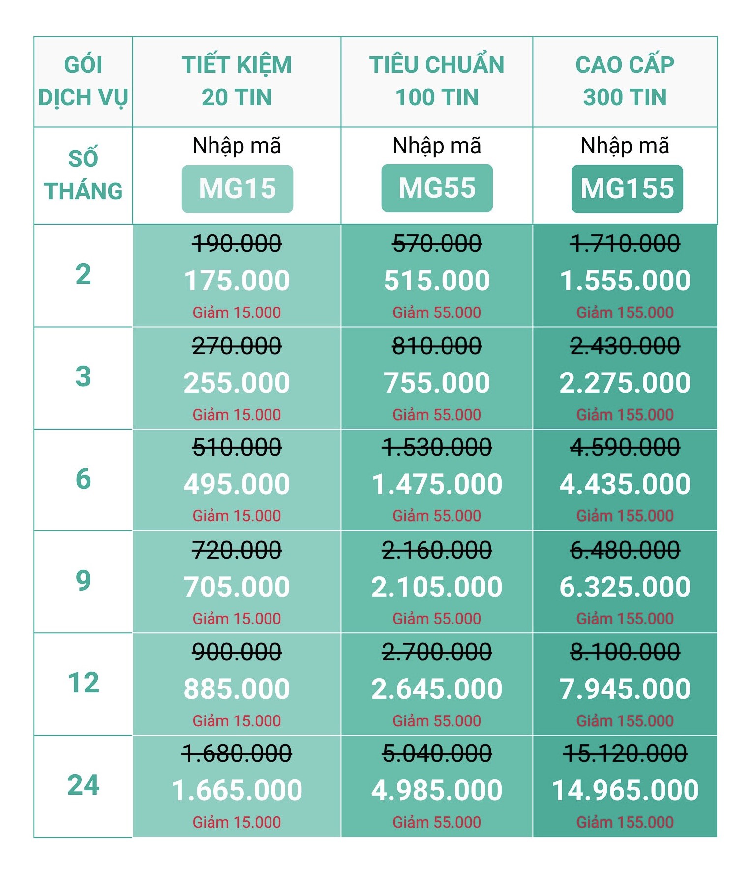 - Nhập mã MG155 giảm 155K khi mua phí thành viên Cao cấp từ 2 tháng